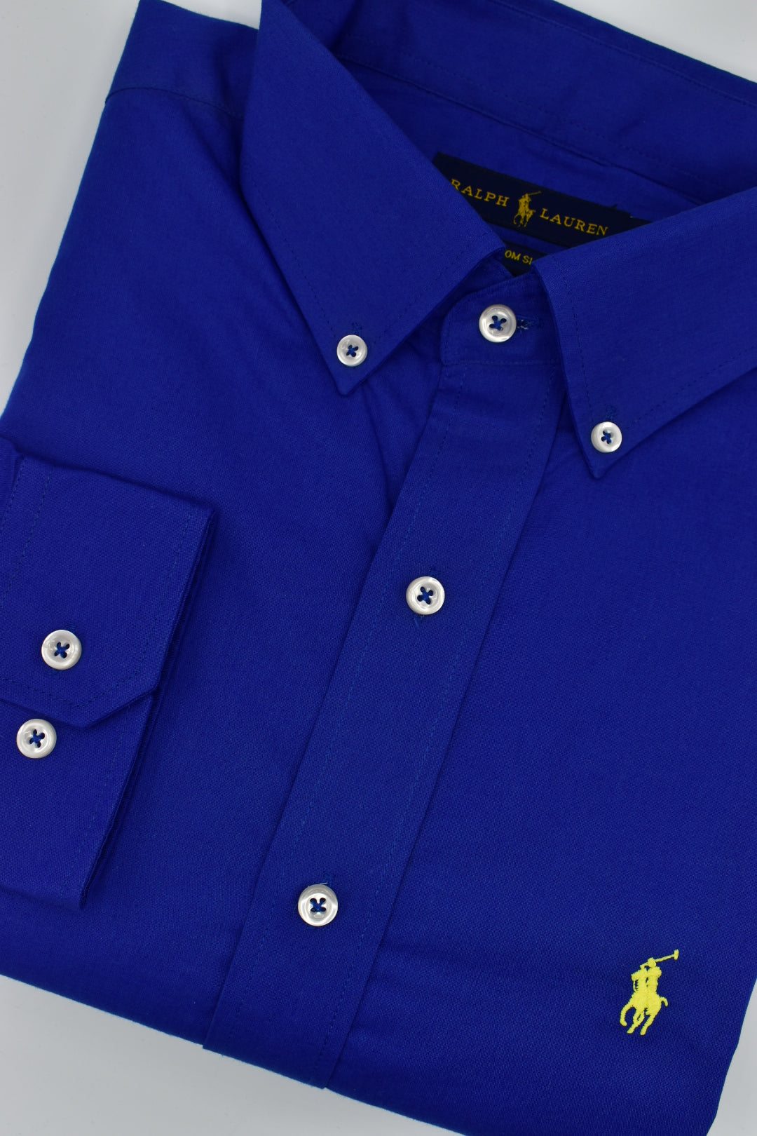 Moderno y elegante, con un logo bordado perfecto y botones bottom Down y puño convertible doble botón.